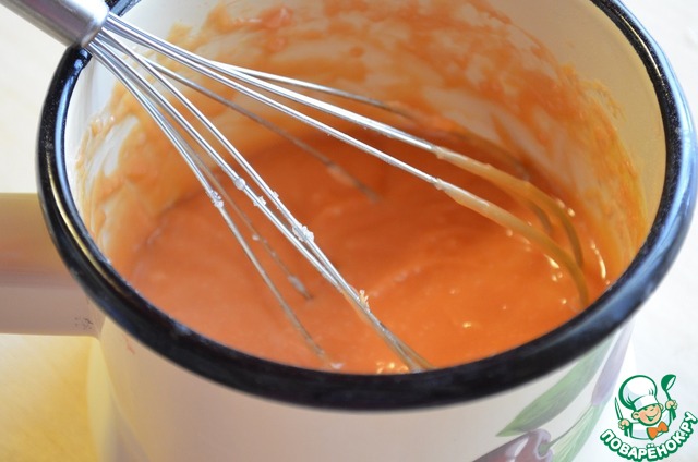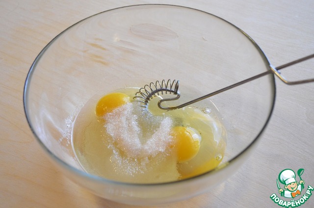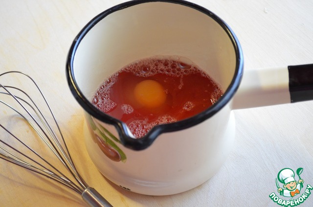 3. В арбузный сок вбить два яйца, добавить сахар, мед и хорошо перемешать.