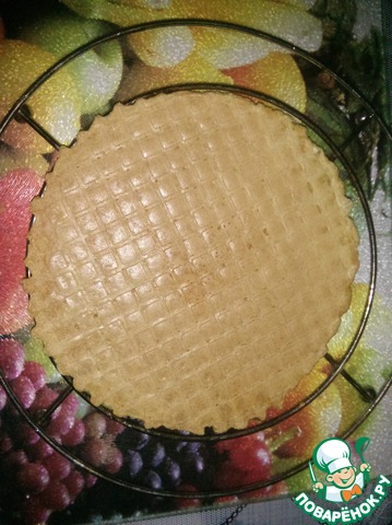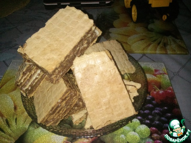 Вот таких вышло три "тортика"! Вынесла в прохладное место, но не в холодильник, чтобы не отсырели вафли.