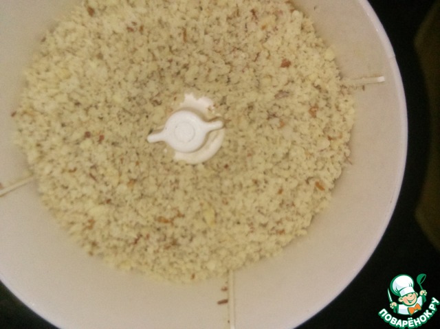 Халву измельчить в крошку, измельчителем. Затем добавить какао-порошок, измельченные орехи и сухое молоко, которое я благополучно заменила детской смесью "Малыш" рисовый (рисовый не обладает запахом, как с другими крупами). Тщательно перемешать