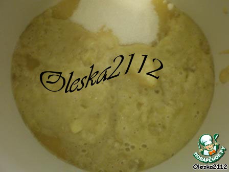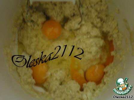 К муке и банановому пюре добавляем: яйца, минеральную воду. Вымешиваем миксером.