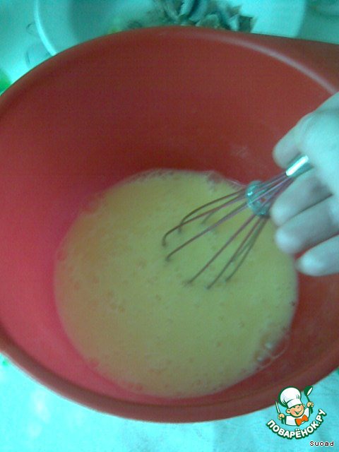 Добавить сметану и перемешать при помощи венчика.