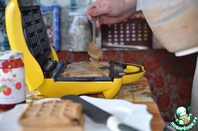 Для того, чтобы вафли были полезными и менее калорийными, я в первую очередь поменяла часть муки на цельнозерновую. И использовала вместо какао - кэроб, присланный Надюшей- Navely.