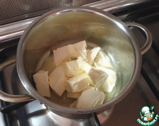 На огне растапливаем наше масло (в моем случае масло и маргарин). Немного охлаждаем.