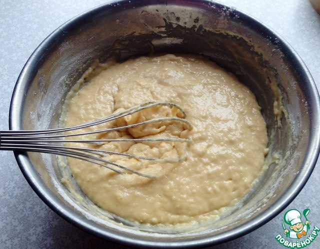 Вот такое у нас тесто получается. Мне кажется, оно близко по структуре к тесту для оладий, но, думаю, чуточку гуще.