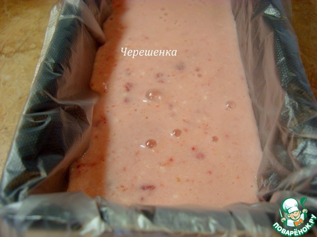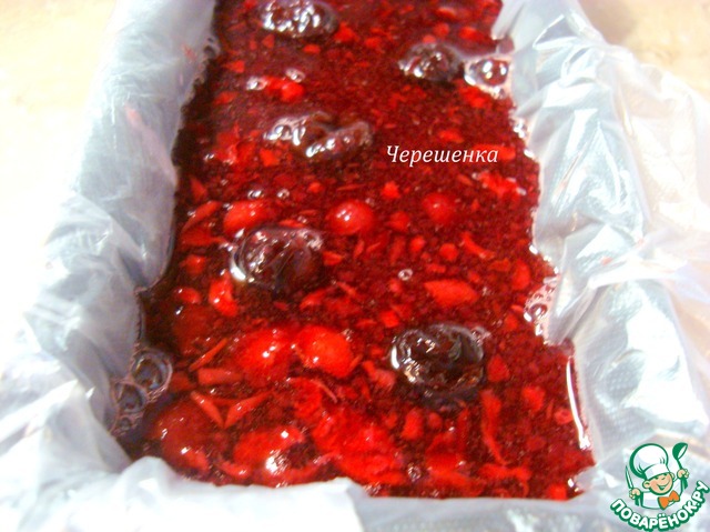 Вылить вишнево-йогуртовую начинку в форму, на основу. Поставить в холодильник на 1 час.