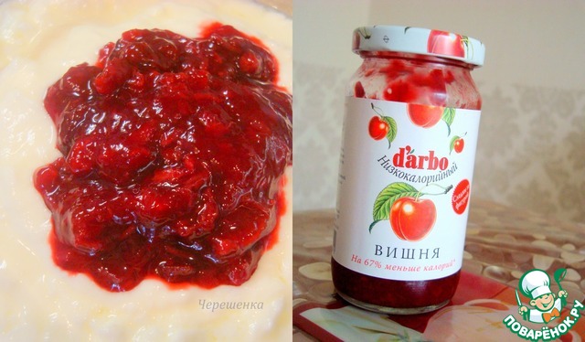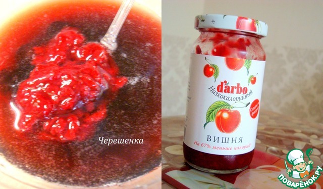 Готовим следующий слой. Смешать конфитюр и воду (50мл).