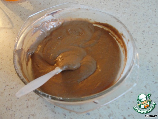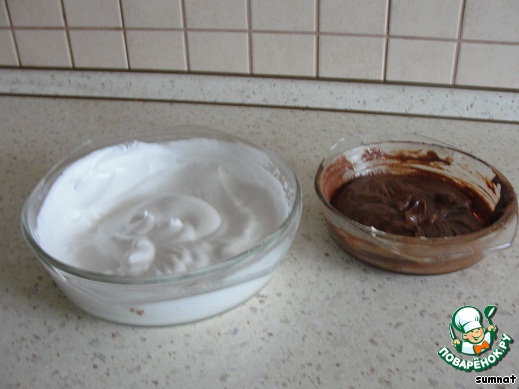 – и порциями ввел крахмально-мучную смесь в белково-шоколадную массу, аккуратно перемешал.