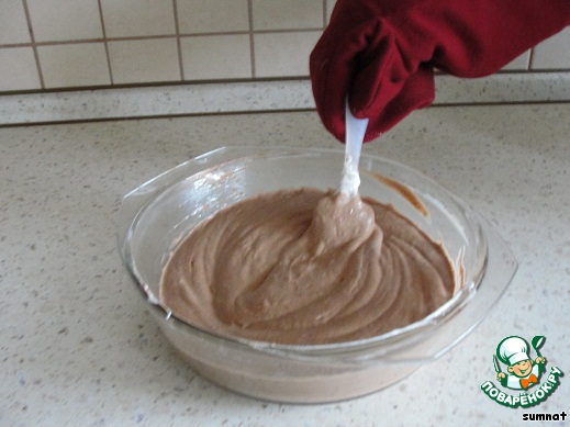и тщательно перемешал его с шоколадно-желатиновой массой до однородности. Получился белоснежный, очень вкусный и нежный крем. Дедушка ненадолго убрал его в холодильник.