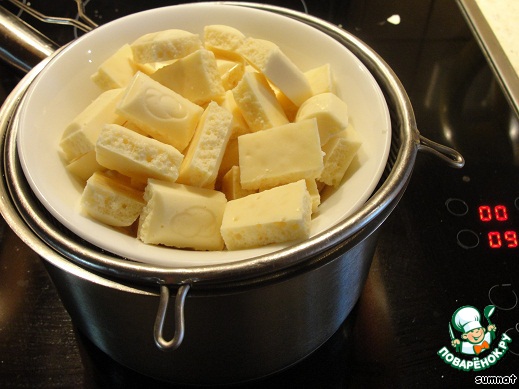 Растопил на двух водяных банях (мог бы и в микроволновке, но не разобрался в кнопках) белый шоколад