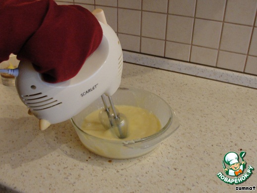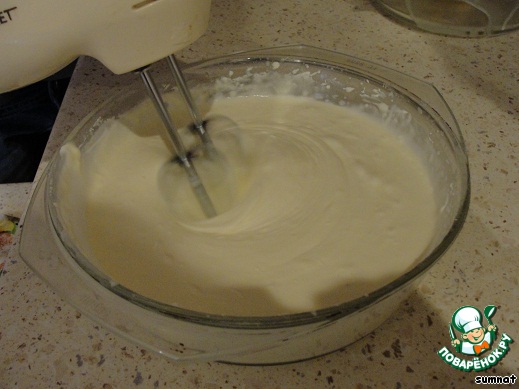 остальные сливки начал взбивать миксером, понемногу добавляя сахарную пудру.