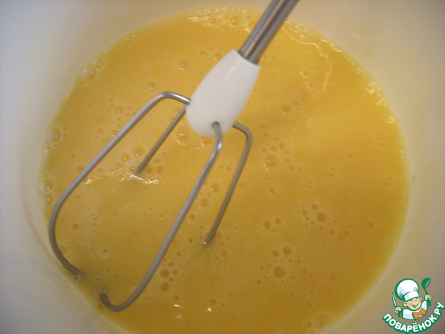 Следите, чтобы дно кастрюли не касалось воды, а сама вода не кипела. Продолжайте взбивать яйца миксиром до побеления и увеличения массы в три раза (около 10 минут). Снять с огня.