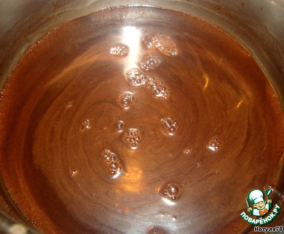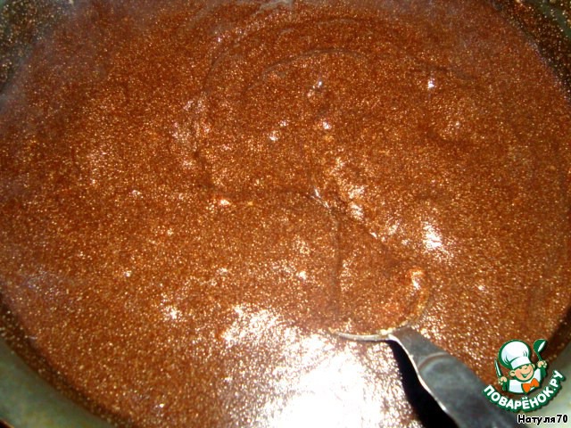 Залить шоколадной массой манку - прямо в сковороде, тщательно перемешать, накрыть крышкой, и оставить до полного остывания.
