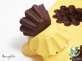 Смазать шоколадом силиконовые формочки, при помощи чайной ложки, или кисточки. Смазывать в 2-3 слоя! (желательно в з слоя) После каждого смазывания ставить в холодильник до полного застывания.