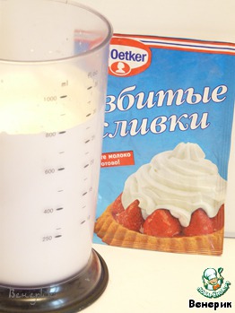 Взбить сухую смесь сливок по инструкции на пачке, и поставить в холодильник до использования.
