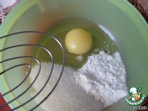 соединить яйцо, муку и сахар