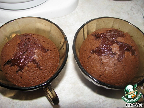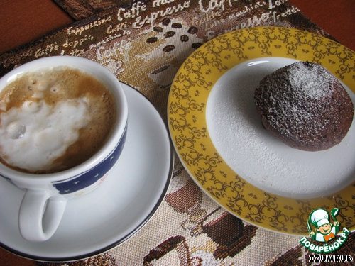 ставим в разогретую духовку ровно на 15 минут, НЕ ДОЛЬШЕ, для того, чтоб получилась внутри жидкая начинка,