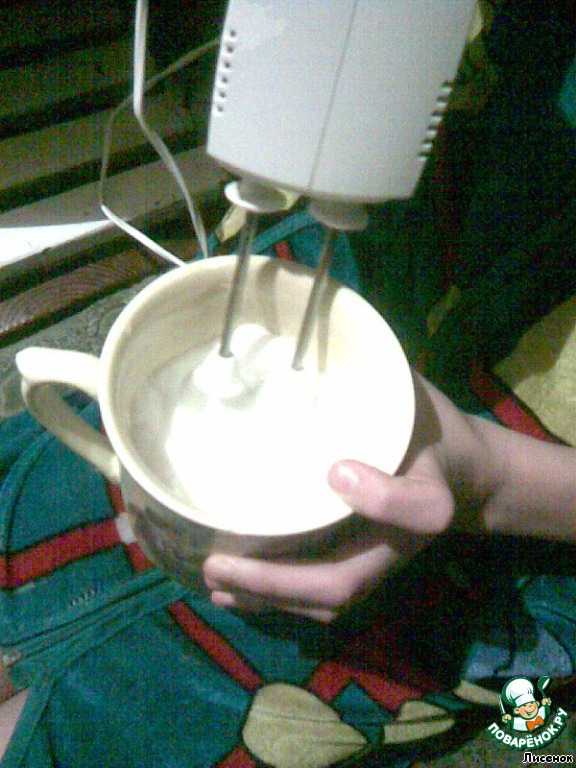 Взбить белки с 4 ст.л. сахара и щепоткой ванильного сахара, щепоткой соли в крепкую пену,