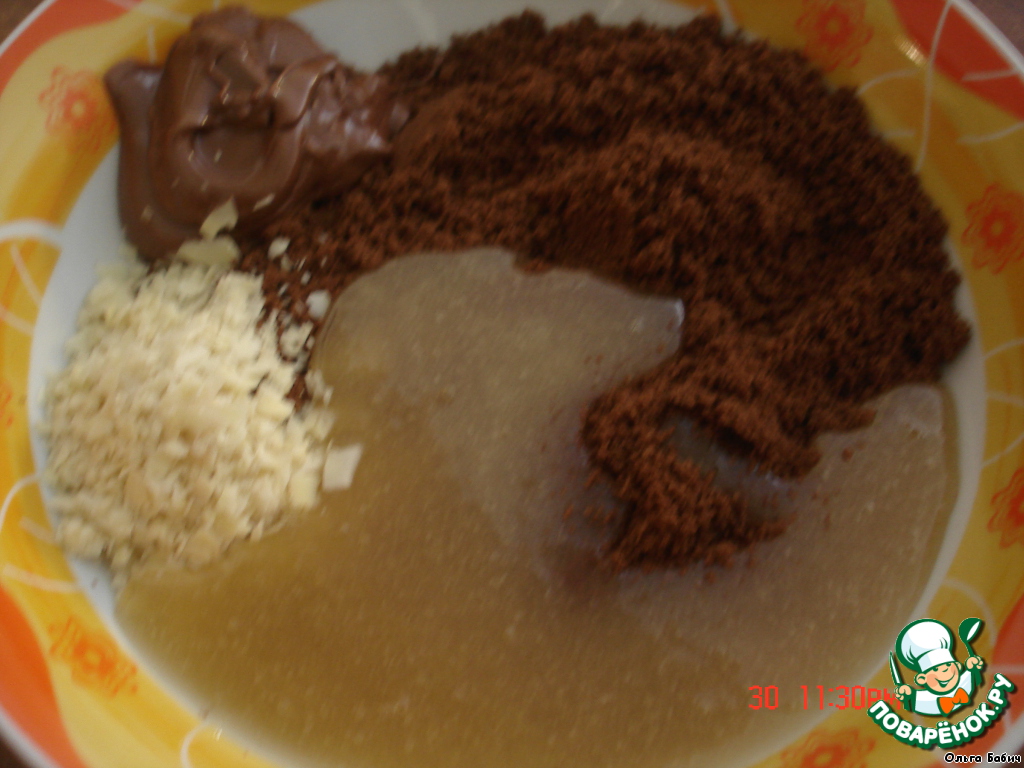 печенье перемолоть в блендере, добавить молотый миндаль, мед, растопленный шоколад,