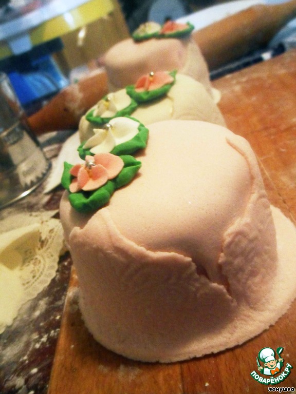 Отправляем пирожные в холодильник и приступаем к мастике.