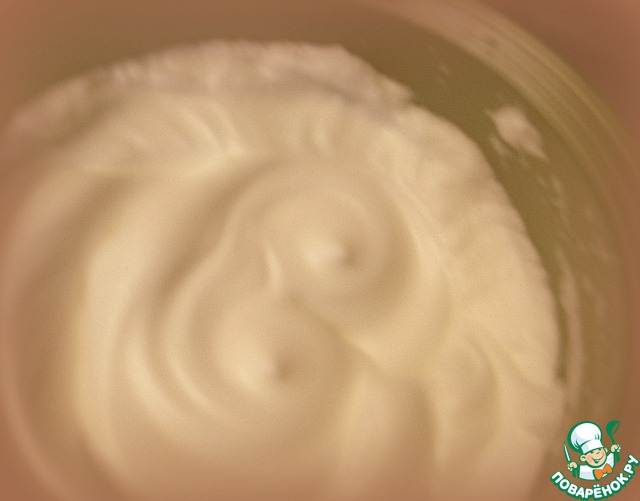 Белки (4 шт) взбиваем в самую крутую пену. Для получения наилучшего результата добавьте в белки щепотку соли перед началом взбивания, емкость и венчики должны быть сухими.