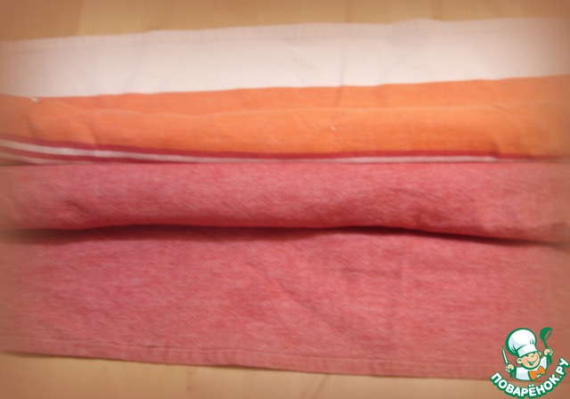 Оставить все рулетики (их получилось 8) остывать, плотно завернув в полотенце (я использовала два полотенца, по 4 рулета в каждом).