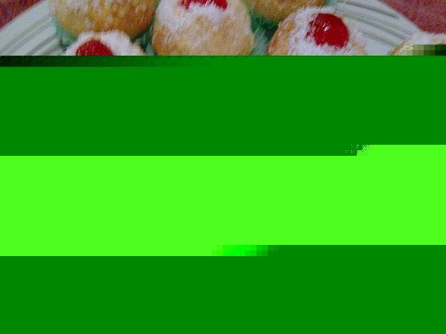 катаем шарики размером с небольшои мандарин. сверху делаем небольшое углубление и ложим половинку вишни.