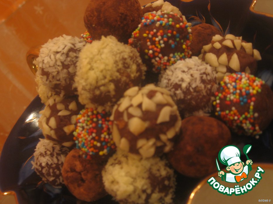 | Вкусные, красивые пирожные-конфетки по мотивам всеми любимой "Картошки" украсят даже праздничный стол. Рецепт подсмотрела в журнале "Единственная". На сайте есть похожие рецепты, надеюсь, и мой вариант Вам понравится.. |