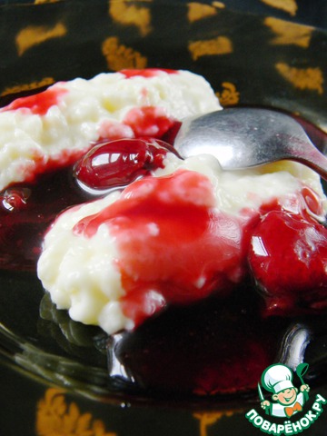 И вот так :сливки и вишневый кисель, очень, очень вкусно)))