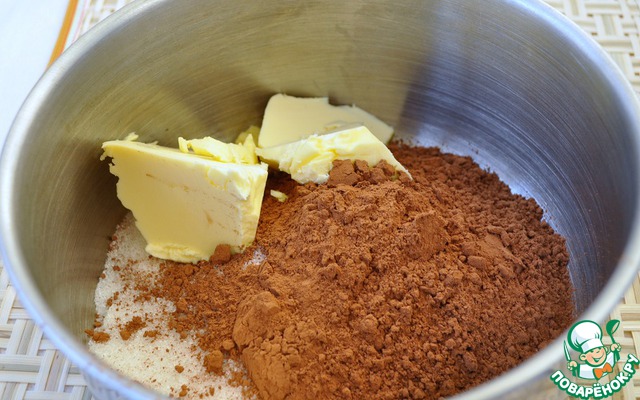Варим глазурь. Насыпаю сахар, масло, какао и добавляю молоко. Варю на среднем огне до загустения!