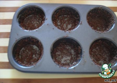 Формы смазать сливочным маслом, присыпать тёртым шоколадом. У меня форма для маффинов (совет: используйте лучше порционные, одинарные формы - с ними легче работать в этом рецепте).