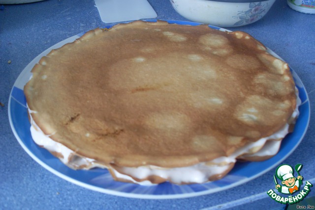 Сверху накрываем четвертым блином и ставим в холод на 20 минут.