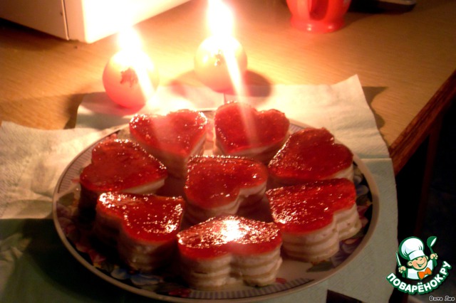 | Совпадение масленицы и дня Св. Валентина не так часто бывает. Грех не воспользоваться такой возможностью. Отведайте блинные пирожные "Валентинки" |
