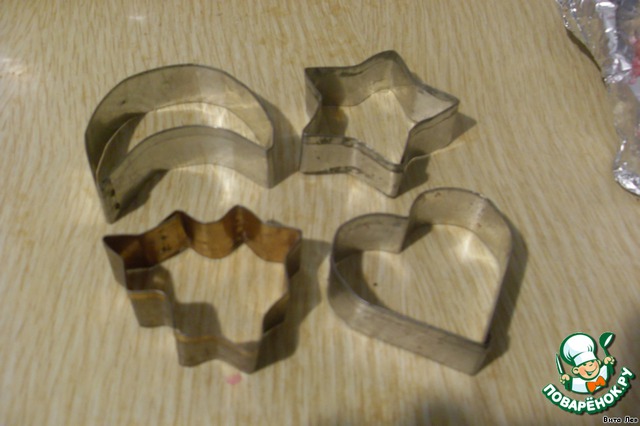 Далее я воспользовалась формочками для печенья, которые нашла у мамы, которые собственно и навели меня на эту идею.