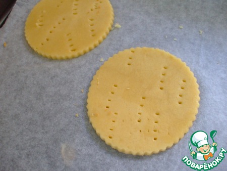 Накрыть тесто листом пергаментной бумаги или пищевой пленки и раскатать его таким образом, чтобы можно было вырезать 6 кругов диаметром 7,5 см.