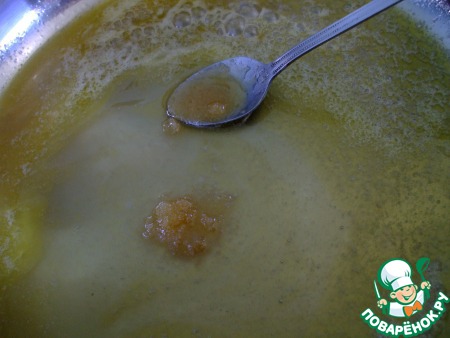 В небольшой кастрюльке смешать мед -50 гр и 30 гр масла. Нагревать до момента, когда смесь станет жидкой и полностью объединиться. Не доводить до кипения.