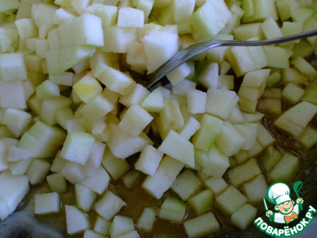 Как только масло растает, добавить яблоки. Готовить их до тех пор, пока они не станут прозрачными и мягкими, время от времени помешивая.