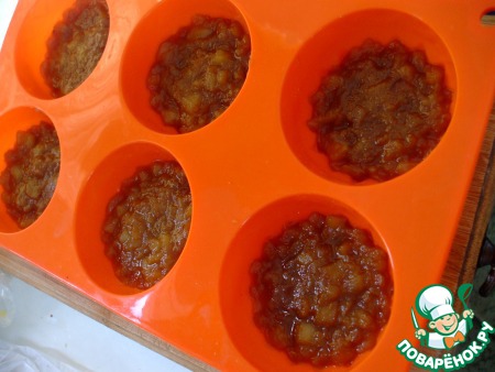 Разложить карамельные яблоки по силиконовым формочкам для маффинов.