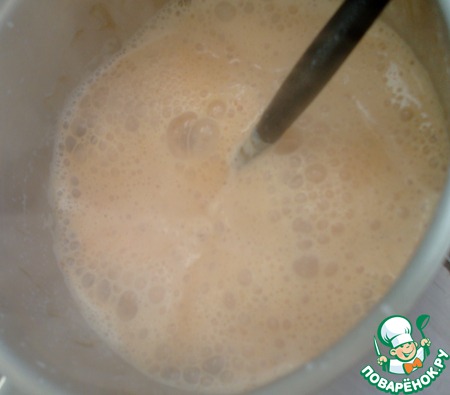 Влить в карамель сливки. Будьте осторожны, горячие брызги могут лететь довольно далеко - могут обжечь руки.