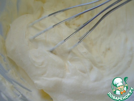 Охлаждённые 33% сливки взбить в крепкую пену.