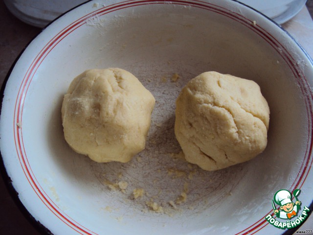 Тщательно перемешать, разделить тесто на две части и положить в холодильник.