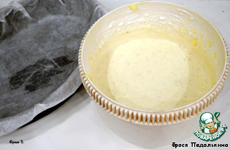 Форму смазать маслом, застелить пергаментом, вылить тесто. Выпекать при темп-ре 180 гр. - 40-45 минут до золотистого цвета.