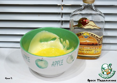 Сливочное масло растопить, добавить ром (коньяк), ванильный экстракт, остудить.