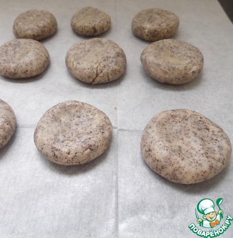 Через 40 минут тесто достать, разделить на кусочки (четное количество) и сформовать кружочки. Выложить заготовки на противень застеленный пекарской бумагой, выпекать в заранее разогретой духовке при 180 градусах, примерно 10 - 15 минут.