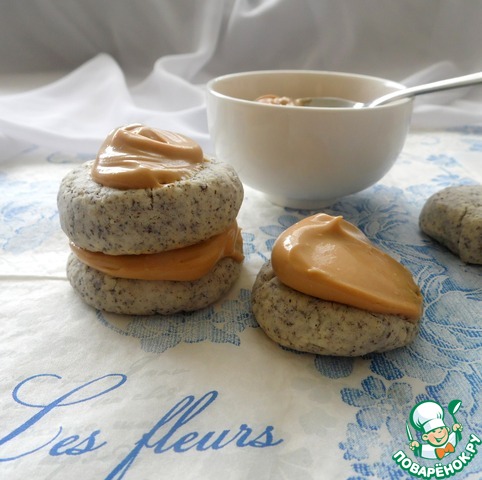 Для крема: Смешать сметану с вареной сгущёнкой и взбить миксером. Охладить крем. Собрать попарно печенья в сендвичи, скрепляя их кремом. На верхнее печенье тоже накладываем немного крема.