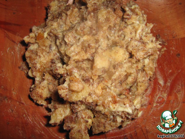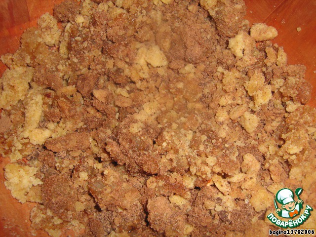 К остывшей груше добавляем молотый миндаль, натертый на терке шоколад и измельченное тесто из середины половинок.