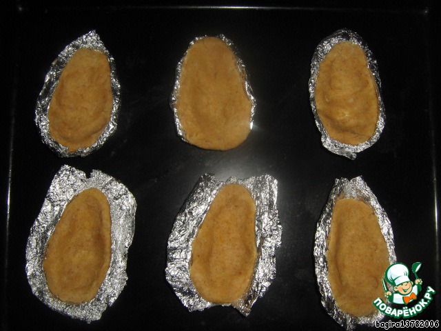 Аккуратно снимаем фольгу, т.к. тесто очень мягкое, и даем остыть выпеченным половинкам.
