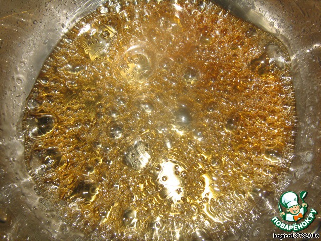 Как только карамель приобрела золотистый цвет - снимаем ее с огня.