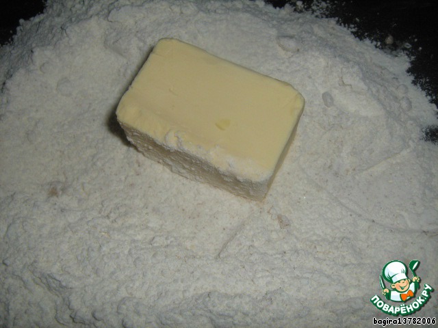 Теперь готовим тесто: смешиваем муку, сахар и миндаль. Затем добавляем охлажденное масло и рубим все это ножом (или в комбайне) до получения крошки.