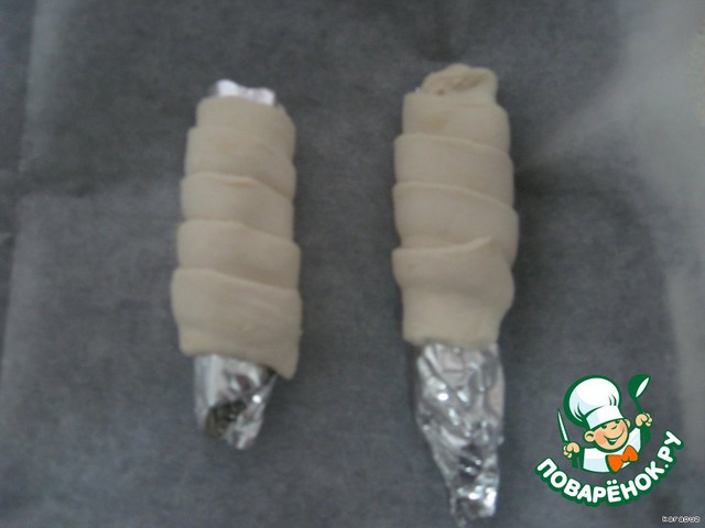 Я взяла ложку, обмотала ручку фольгой и на фольгу намотала полоски теста.