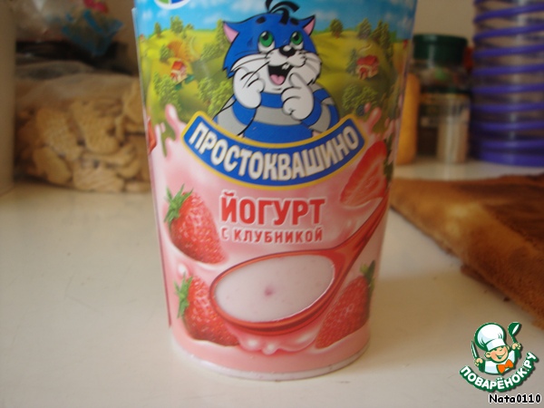 Разрезаем корж пополам, берём йогурт (на ваш вкус)